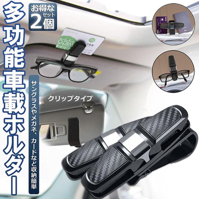 サングラスホルダー メガネホルダー カードホルダー 2個セット 車用 クリップオン サンバイザー サングラス カーボン柄 車用収納ケース カード入れ 車 カードホルダー 多機能車用品 収納ホルダ 送料無料