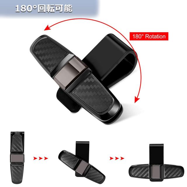 【簡単操作】車のサングラスホルダーは180度回転でき、必要に応じて角度を調整できます。片手で操作できるので、時間と手間を省くことができます。