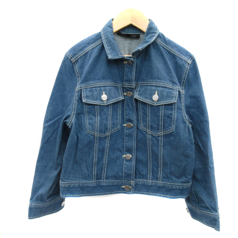 【中古】ジルスチュアート JILL STUART デニムジャケット Gジャン ジージャン ミドル丈 無地 S 青 ブルー レディース