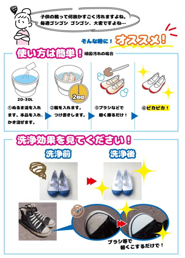 頑固な汚れにも ズックつけおき110番 頑固な汚れも簡単キレイ ![]() ![]() | ||||||||||
