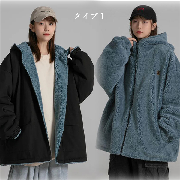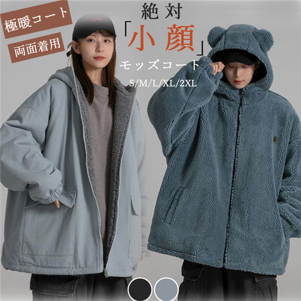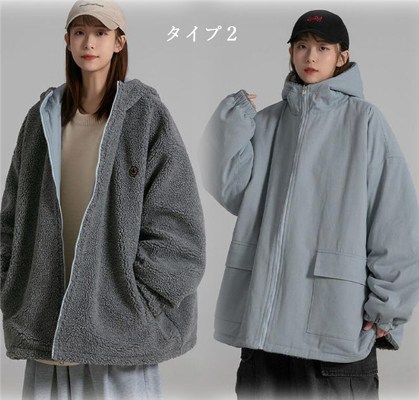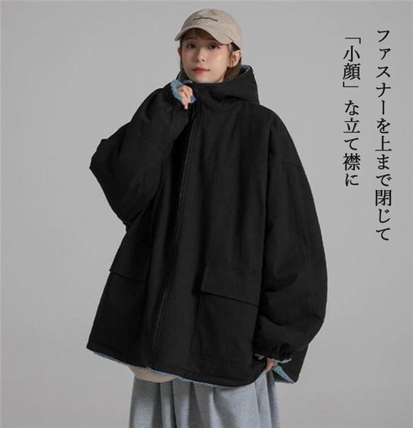 モッズコート レディース ジャケット ダウンジャケット ブルゾン 綿入れ アウター ボアコート 裏起毛 コートフード ファー付き ふわふわ 長袖 秋冬 裏地付き 暖かい 両面着用 大きいサイズ ビッグシルエット 体型カバー カジュアル 学生 大人 上品 オフィス 通勤 お洒落