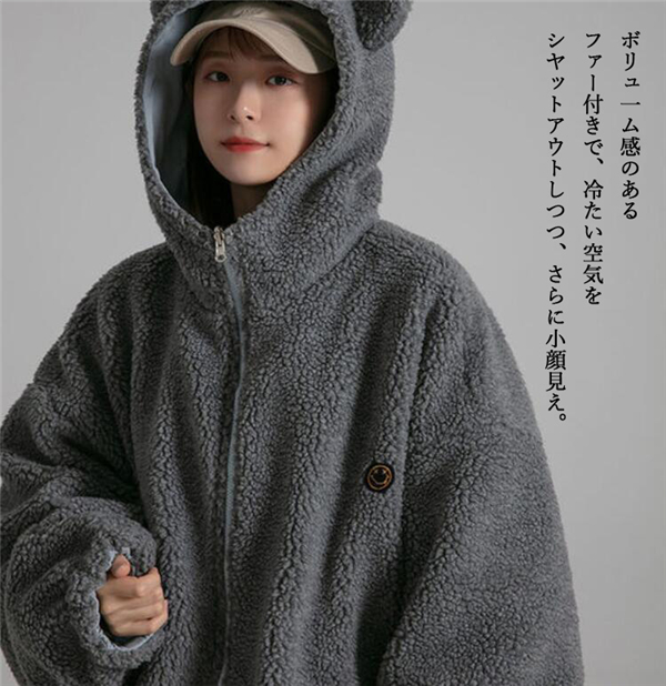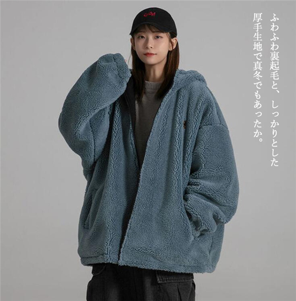 見頃が全面裏ボアふわふわの厚手ボアで保温性も抜群です。