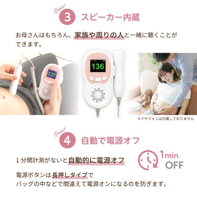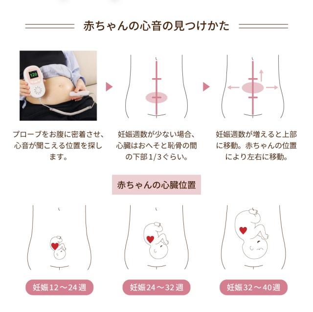 - 初めは心音を探すのが難しく感じましたが、段々と慣れてきてすぐに心音が見つけられるようになりました! 心音を聞くことで家族全員が赤ちゃんの誕生が余計に待ち遠しくなりました。