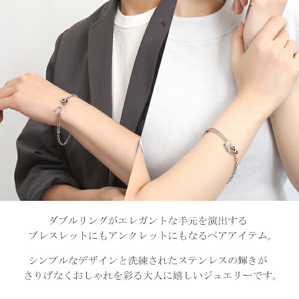 刻印無料 close to me St ツーカラー ダブルリング 2Way ペアブレスレット ペアアンクレット ステンレス インフィニティ ∞ 無限 銀 上品