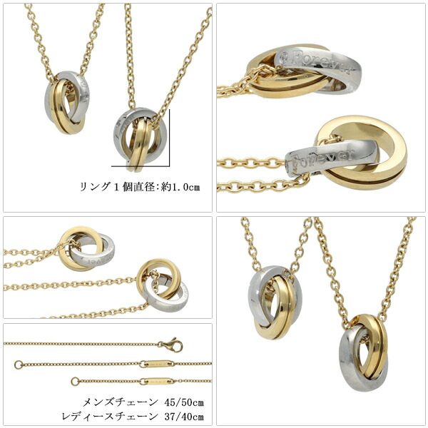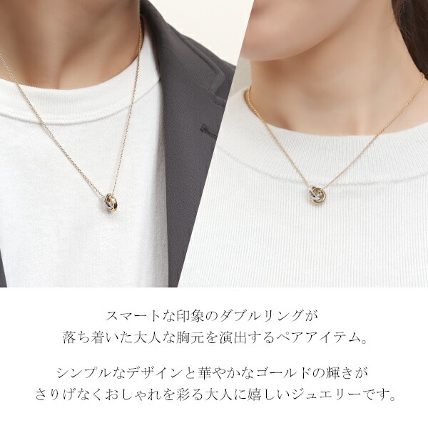 刻印無料 close to me St ゴールド ステンレス インフィニティ ∞ ダブルリング ペアネックレス ゴールドコーティング 金色 上品