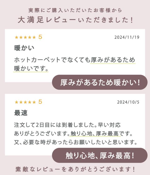 - ホットカーペットでなくても厚みがあるため暖かいです。