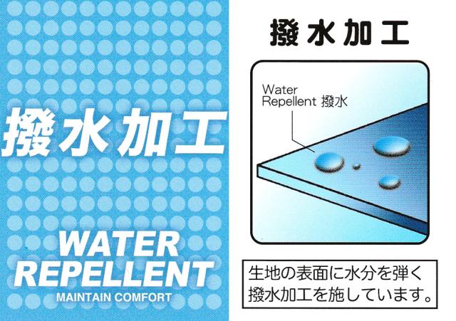 ■撥水加工:生地の表面に水分を弾く撥水加工を施しています。※永久的に持続する加工ではありません。