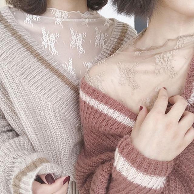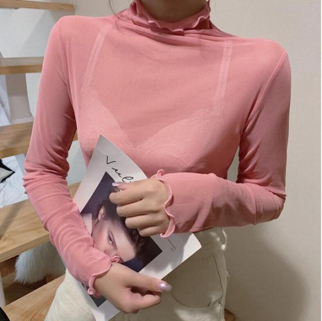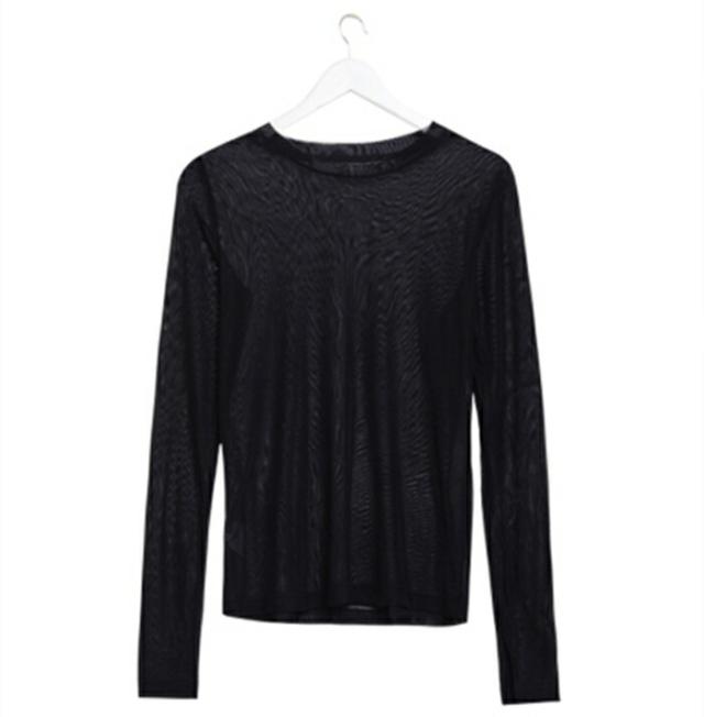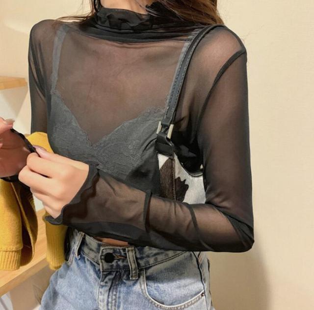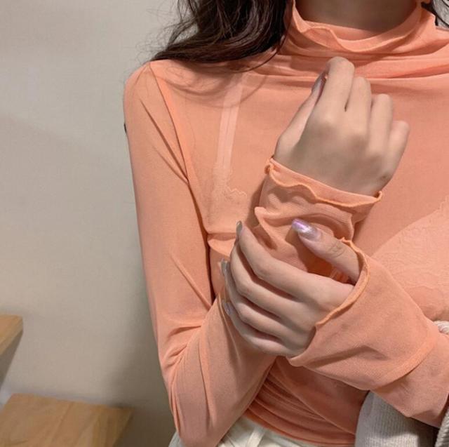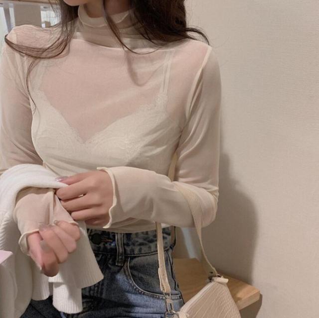 シアートップス カットソー チュールトップス レディース 長袖 シースルー ハイネック クールネック レース 3TYPE メロウ 重ね着 インナー 透け感 レイヤード 春 秋
