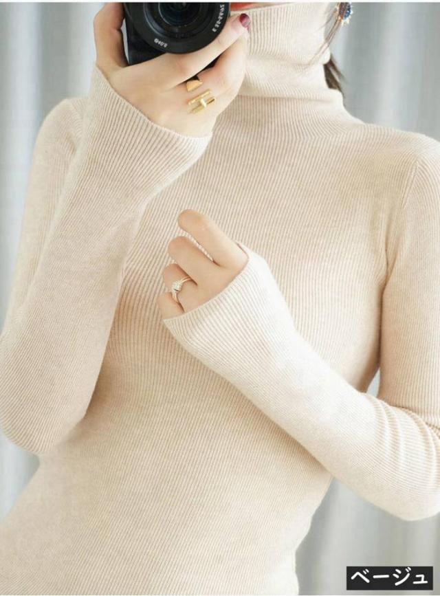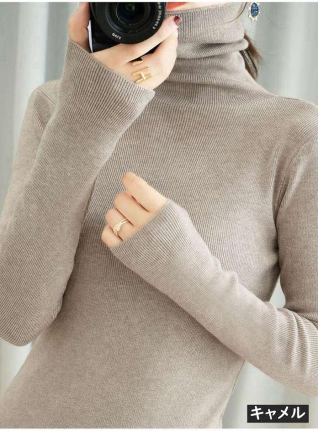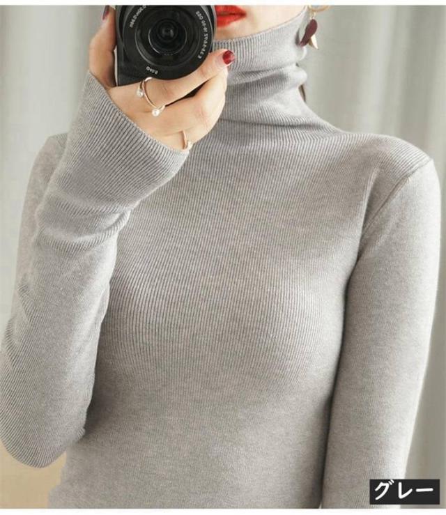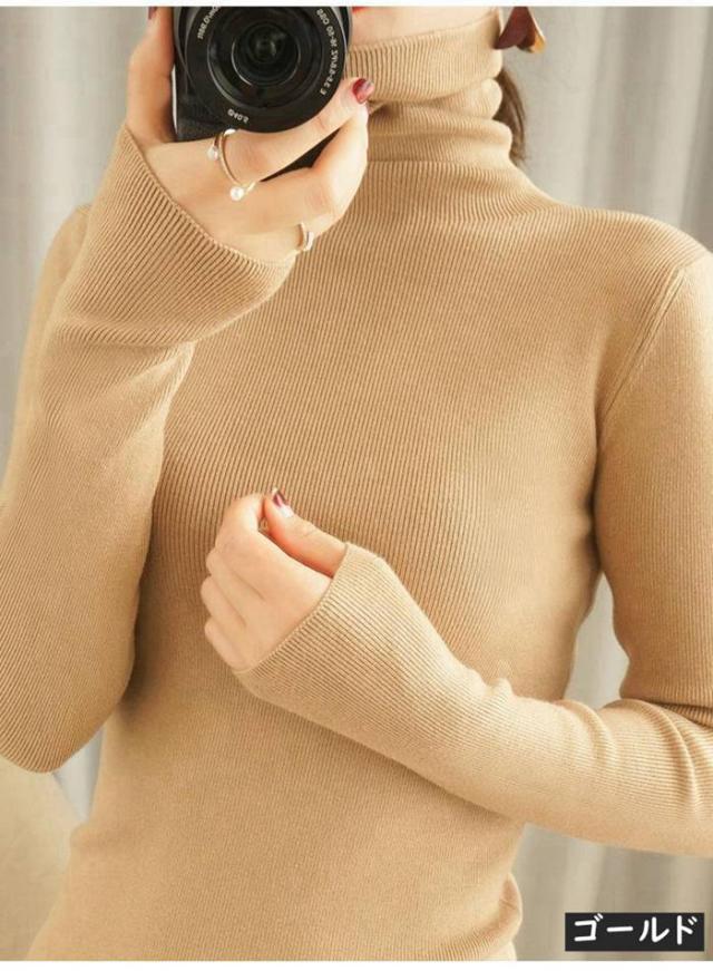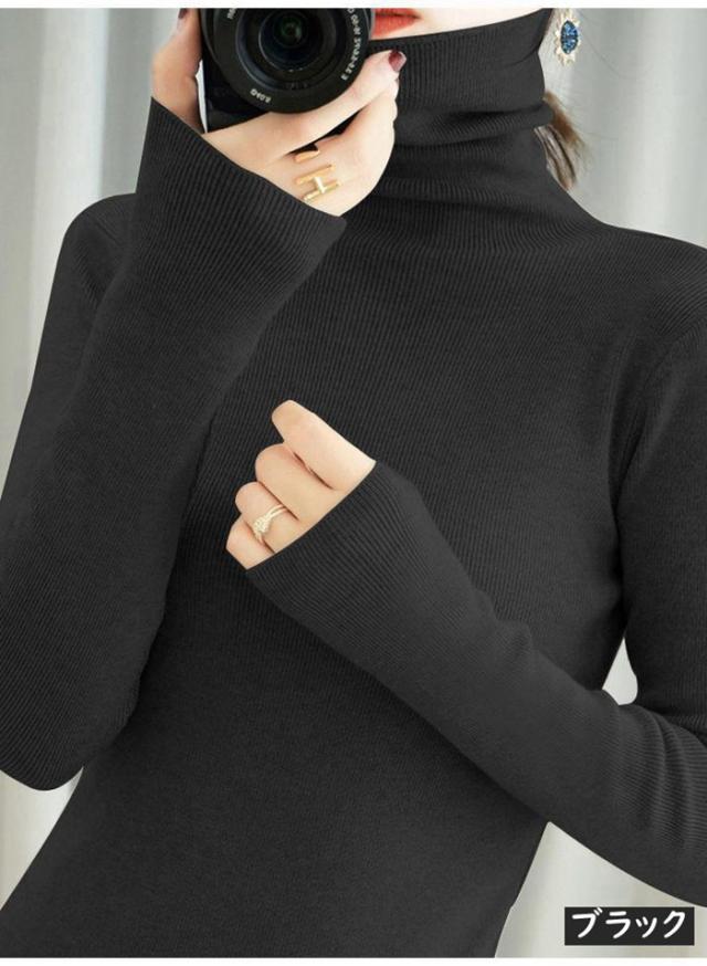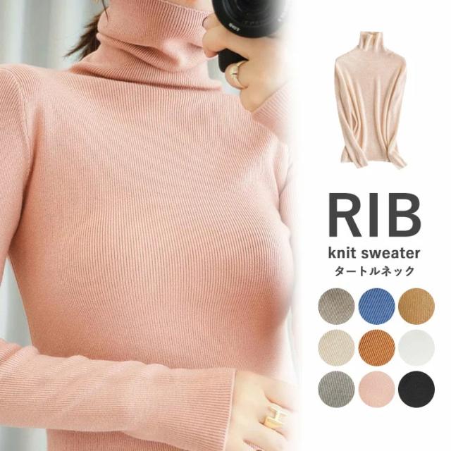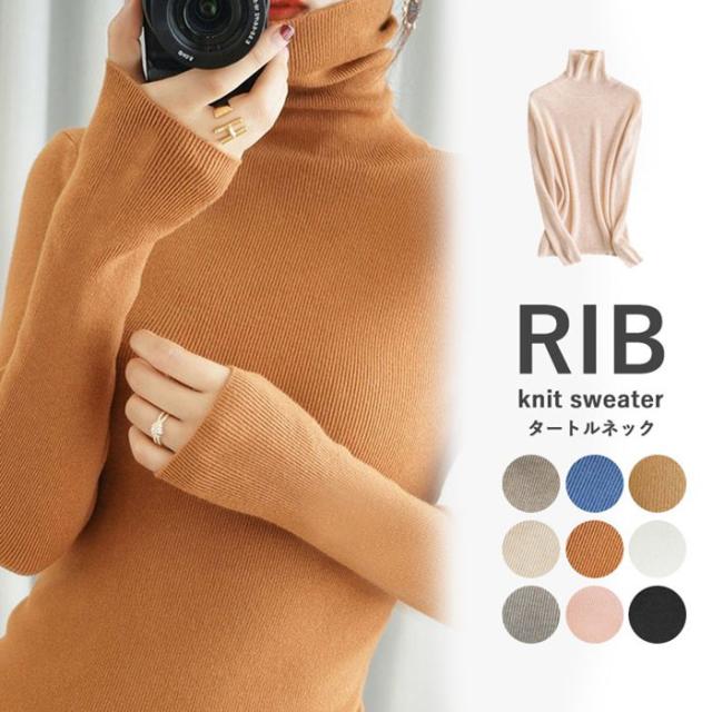 ニット リブニット ニットセーター レディース カットソー トップス ハイネック タートルネック スリム インナー シンプル カジュアル 通勤 通学 長袖 秋 冬 新作