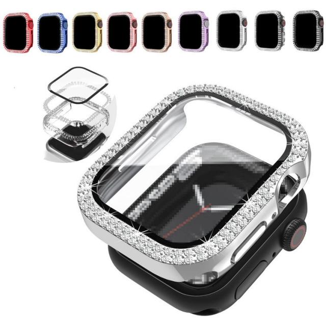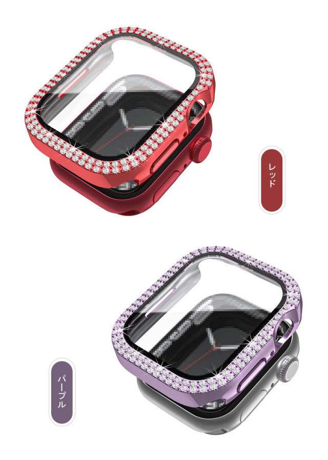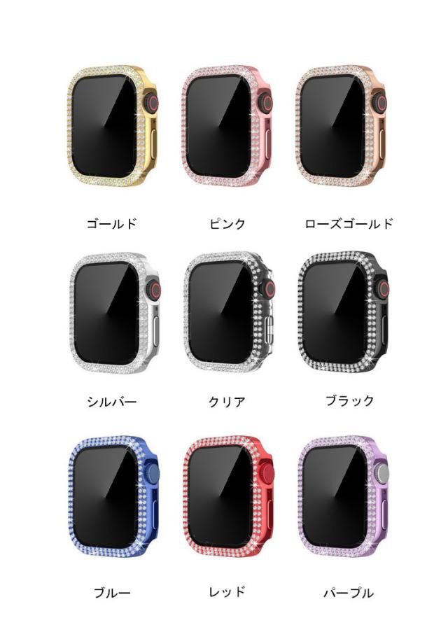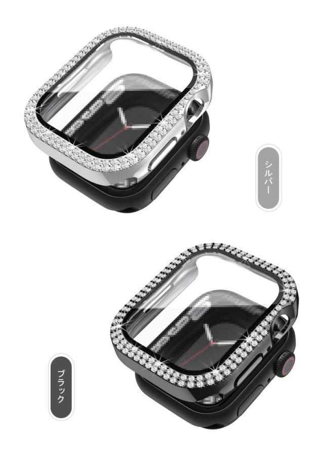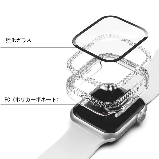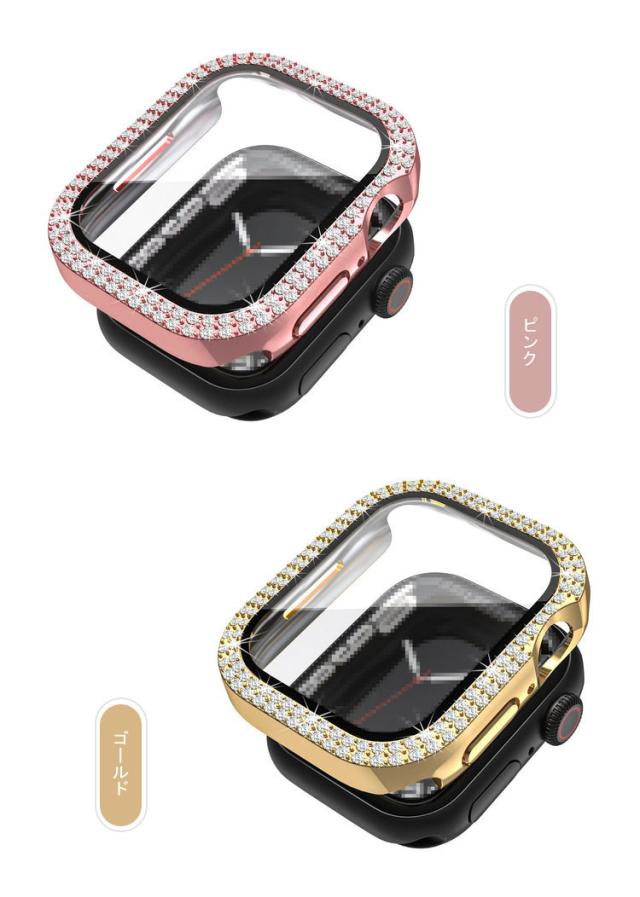 Apple Watch Series 9/8/7/Ultra 2/1 ケース ガラスフィルム ケース カバー かわいい ラインストーン きらきら 液晶カバー アップルウォッチ シリーズ9/8/7/ウルトラ2/1 41mm/45mm/49mm ハードケース 保護ケース フィルム一体 装着簡単