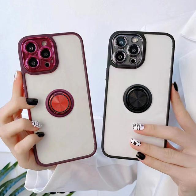 Apple iPhone14/14 Plus/14 Pro/14 Pro Max ケース 耐衝撃 カバー 一体型リング付き メッキ 背面透明 ケース アップル アイフォン14/14プラス/14プロ/14プロマックス おすすめ おしゃれ スマートフォンケース/カバー