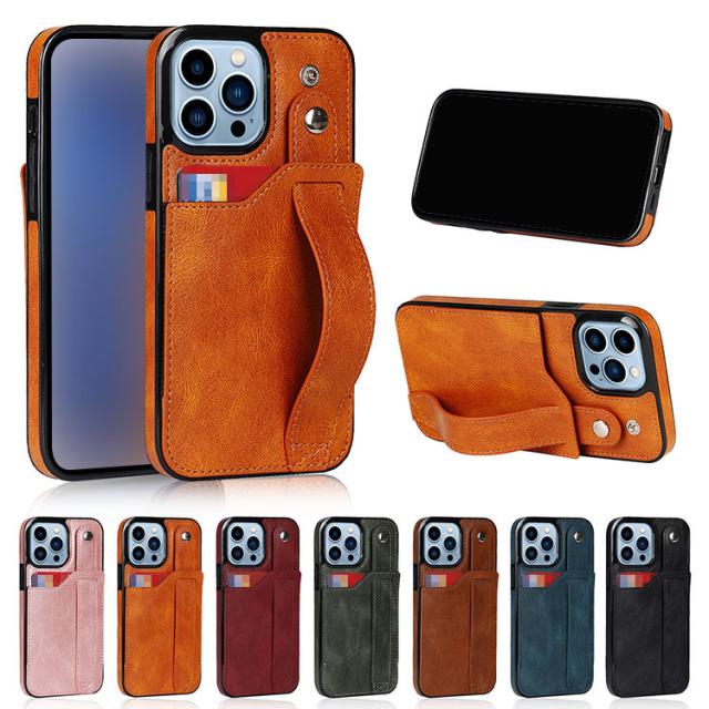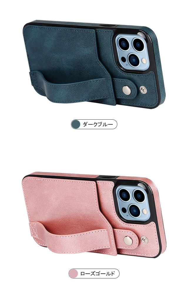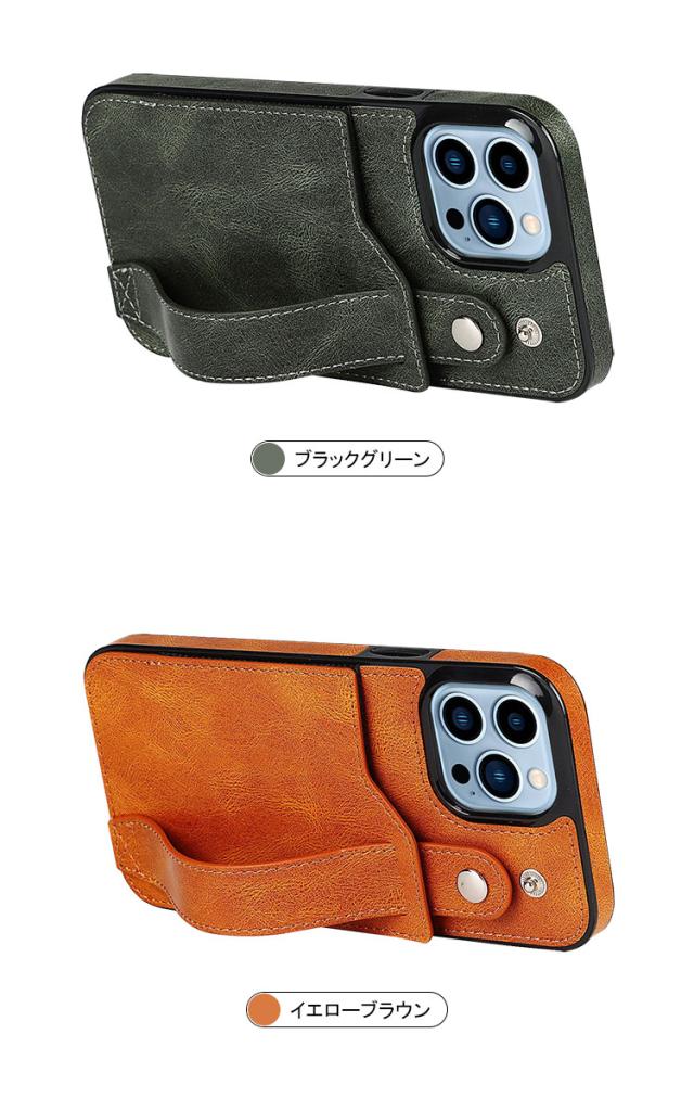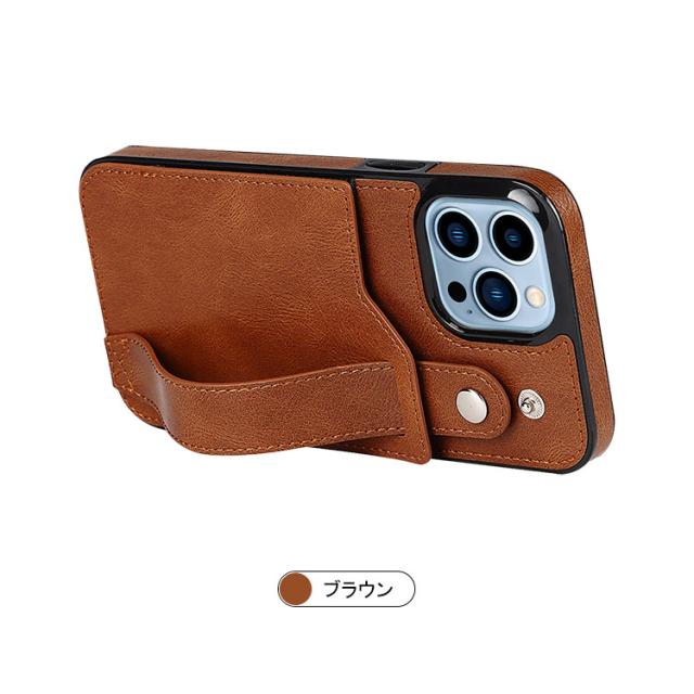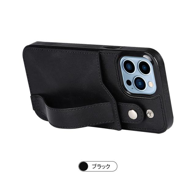 iPhone 14/14 Plus/14 Pro/14 Pro Max ケース/カバー カード収納 スタンド機能 持ち手 ベルト スマホバンド 落下防止ベルト スマホベルト 片手操作 取っ手 レザー調 カバー アイフォン14/14プラス/14プロ/14プロマックス スマートフォンケース/カバー
