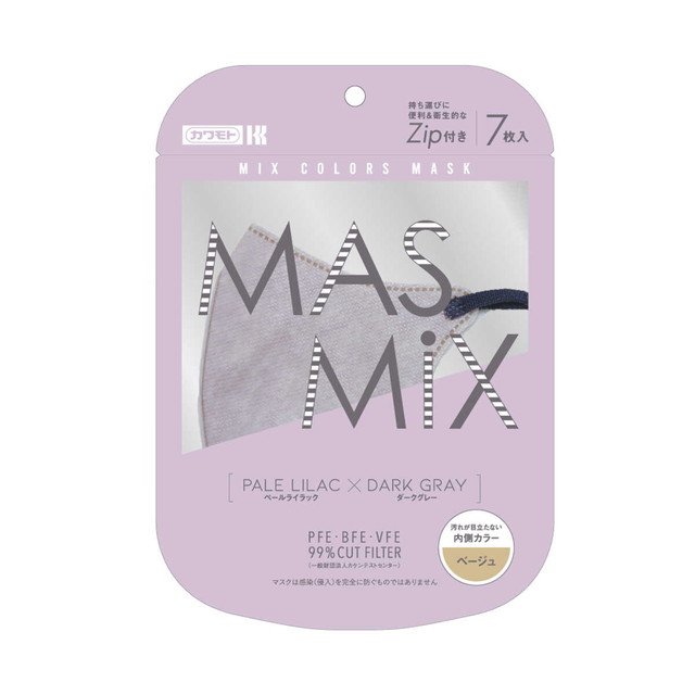 川本産業 MASMIXマスク ペールライラック×ダークグレイ 7枚入り