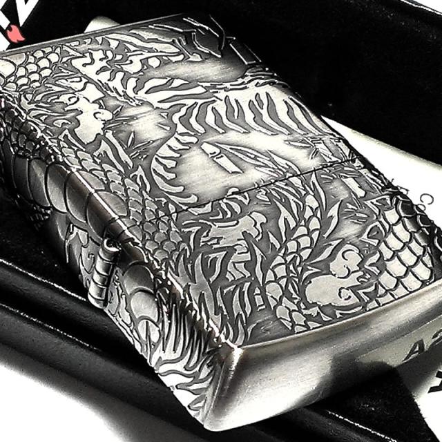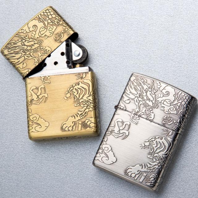 ZIPPO ジッポ ライター 銀 御守り 龍虎 かっこいい 4面 エッチング 彫刻 アンティーク シルバー 竜 連続デザイン メンズ ジッポー ギフト プレゼント