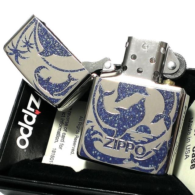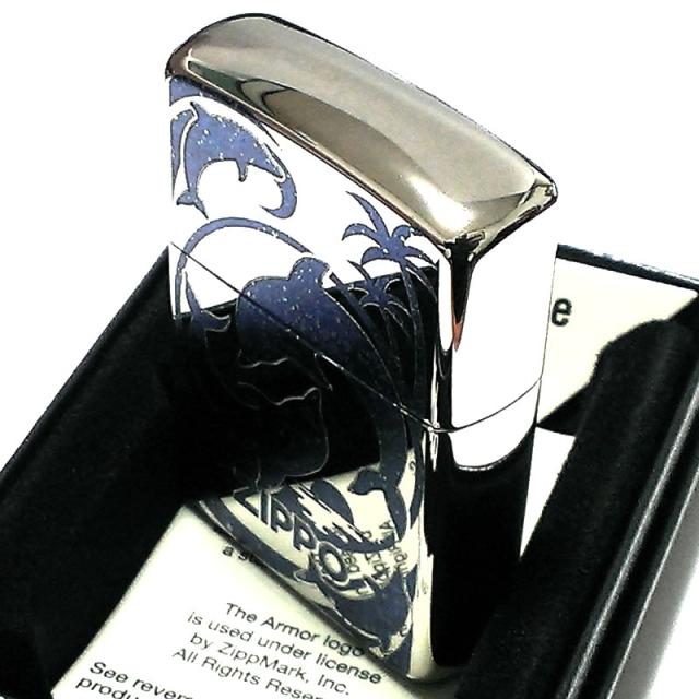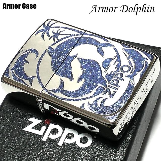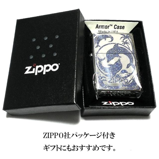 ZIPPO ジッポ アーマー ドルフィン 青 ライター ブルー ラメ 御守り 重厚 かわいい 綺麗 イルカ 海 ロゴ入り おしゃれ メンズ レディース ギフト 贈り物 プレゼント