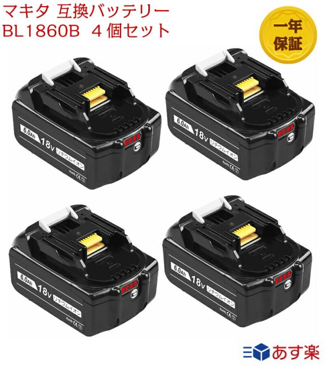 BL1860B 4個セット マキタ 互換バッテリー マキタ 18v6000Ah 残量表示付き 大容量6.0ah マキタ対応 充電式用バッテリー BL1860 BL1830 BL1840 BL1850 BL1860B LED残量表示 電動工具用battery 即日発送 送料無料 あす楽 1年保証