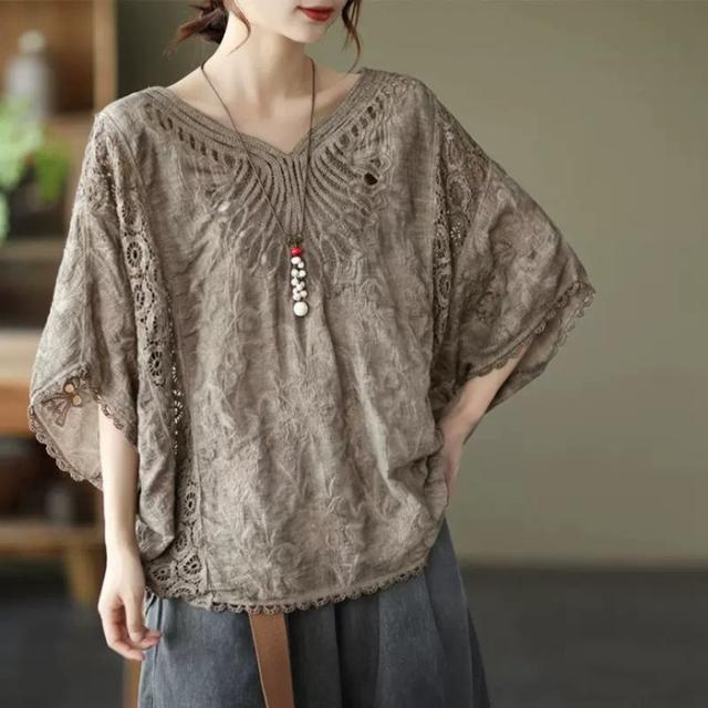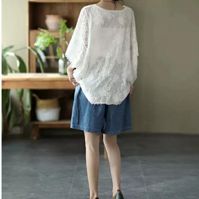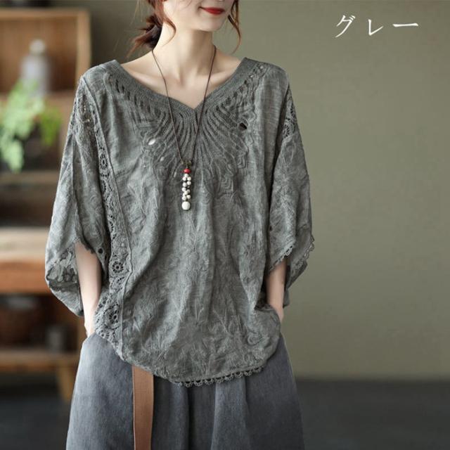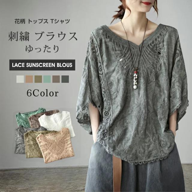 ドルマンブラウス 刺繍ブラウス 花柄 トップス Tシャツ レディース 花柄 プルオーバー ドルマンスリーブ ゆったり 大人 かわいい