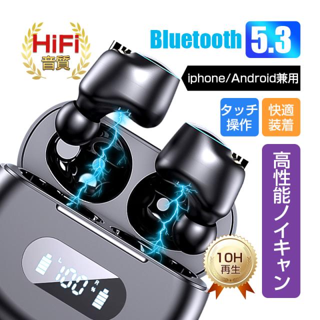 ワイヤレスイヤホン Bluetooth5.3 ENCマイク ハイレゾ iOS/Androidスマホ/タブレット 自動ペアリング Type-C充電 残電量表示 【PL保険加入済み製品・安心】