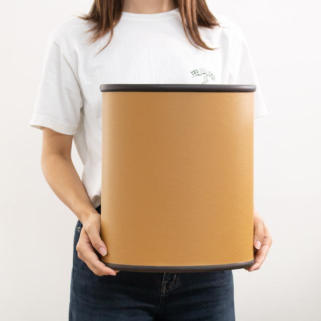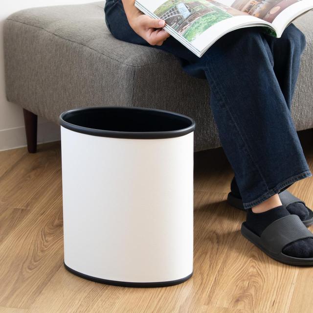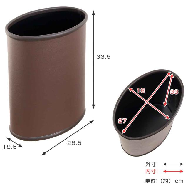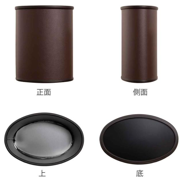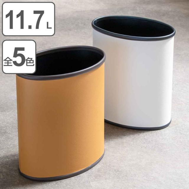 ゴミ箱 11.7L レザー巻 楕円タイプ ( ごみ箱 11.7リットル レザー調 奥行19.5 スリム 小さい リビング 楕円 分別 オフィス ダストボックス ふたなし スチール ゴミ箱 分別)