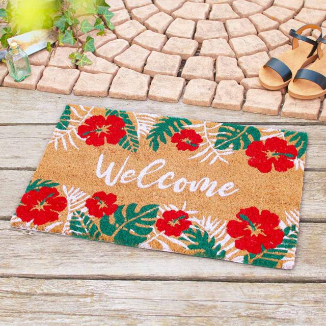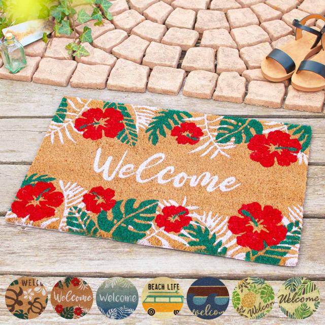 エントランスが映えるハワイアンテイストの玄関マットです。玄関の内や外、靴を脱ぎ履きする玄関たたきなど、屋内・屋外どちらでも使用できます。