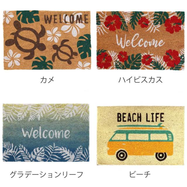玄関マット 屋外兼用 コイヤー 40×60cm ( 玄関 マット 屋外 兼用 厚さ1.5cm ドアマット 泥落とし 滑り止め ウェルカムマット 長方形 ハワイ カメ ハイビスカス HAWAI おしゃれ インテリア ハワイアン )
