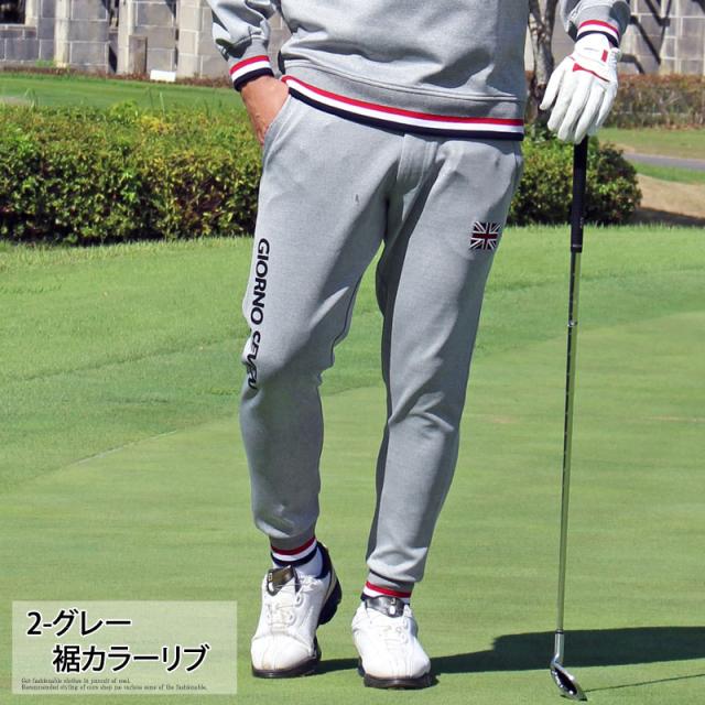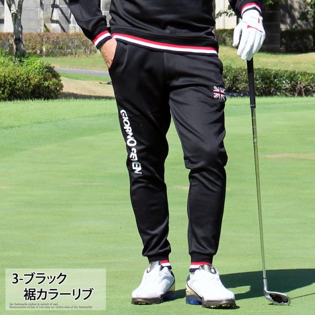 裾カラーリブのロゴの2タイプメンズゴルフパンツ。