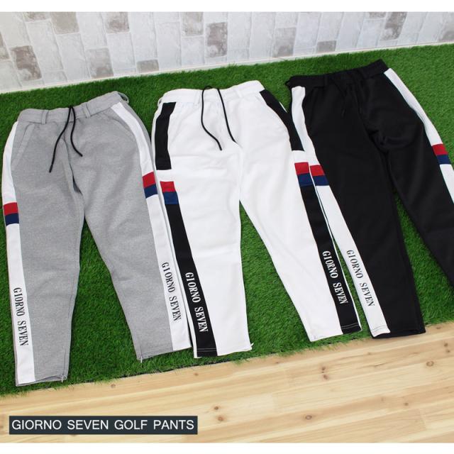M~XXL 新作 ゴルフパンツ メンズ ゴルフウェア GIORNO SEVEN ジョルノセブン ストレッチ ジャージ スウェット ジョガーパンツ サイドライン おしゃれ 刺繍 ロゴ ウエストゴム スリム イージーパンツ ボトムス 秋冬 春夏 送料無料 ゆうパケ