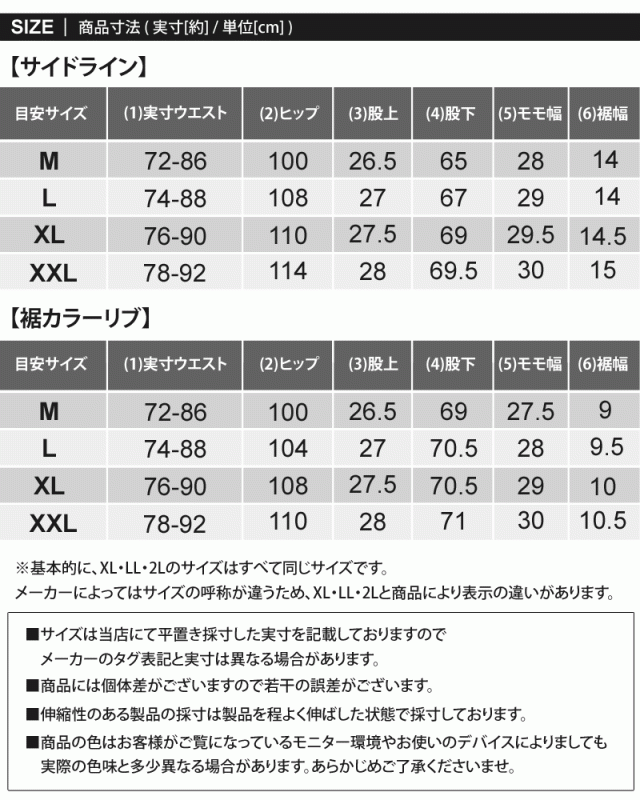 実寸ウエスト/ヒップ/股上/股下/モモ幅/裾幅