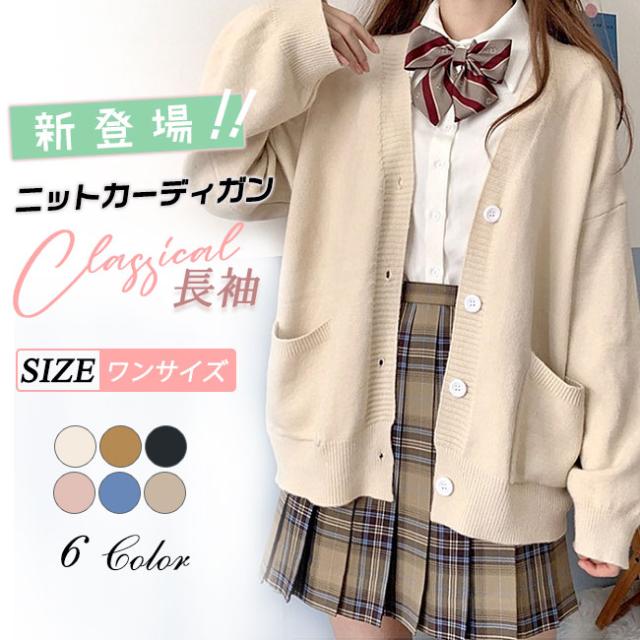新作 カーディガン レディース ニットカーディガン 秋冬 長袖 レディース セーター ニットトップス 学生 制服 アウター 無地 羽織 通学 通勤 春 ゆったり 体型カバー