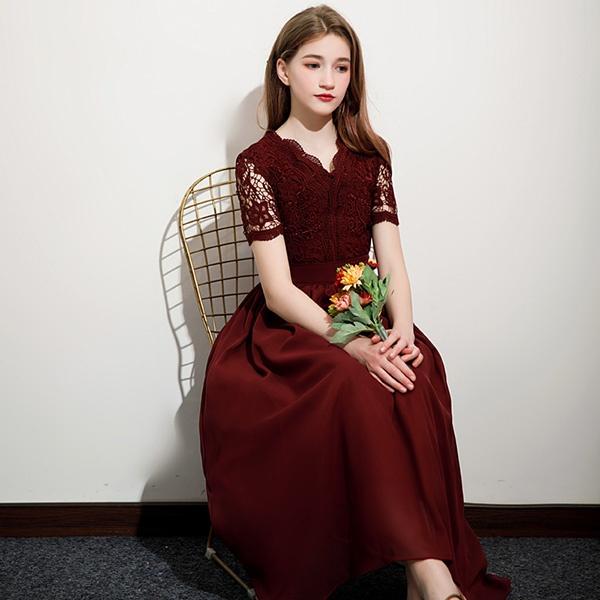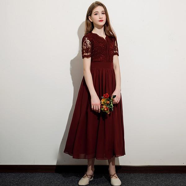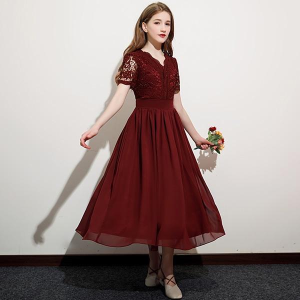 キッズドレス 子供服 ミモレ丈 キッズ ガール 子供ドレス ピアノ 発表会 ワンピース ワインレッド 袖あり スカラップ レース 透け感 プリンセスドレス Aライン ブライダル フォーマル 七五三 可愛い イベント 上品 お姫様 入園式 120 130 140 150 160 170 da940s1s1la