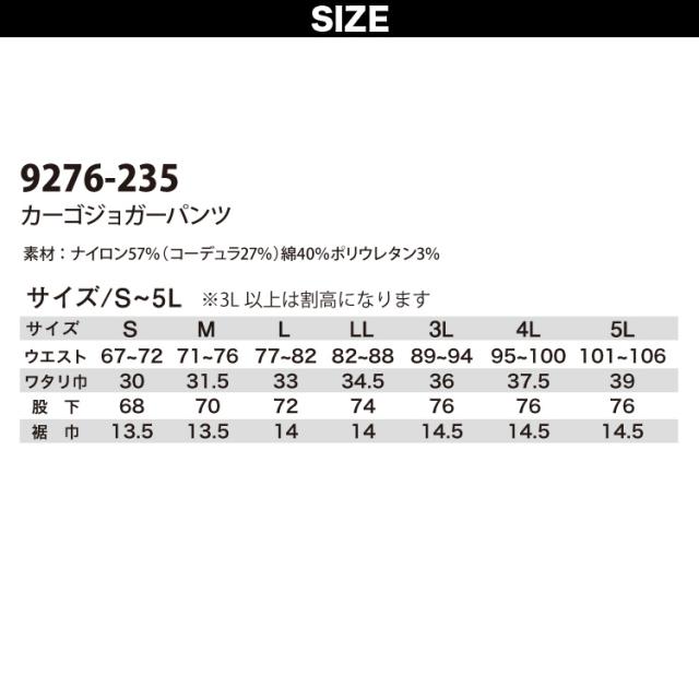 寅壱 9276-235 コーデュラジョガーパンツ ストレッチ 高強度 再帰性反射 作業着 作業服 オールシーズン 春夏秋冬 かっこいい おしゃれ メンズ