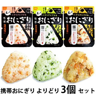 【郵送】 尾西食品 携帯 おにぎり 選べる!よりどり 3個セット (鮭・わかめ・五目おこわ) 長期保存対応 送料無料 75536