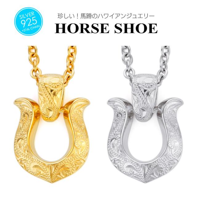 ハワイアンジュエリー ネックレス ホースシュー 馬蹄 金属アレルギー シルバー925 メンズ アクセサリー pe2227 波 スクロール 45cm+5cmのステンレスチェーン付