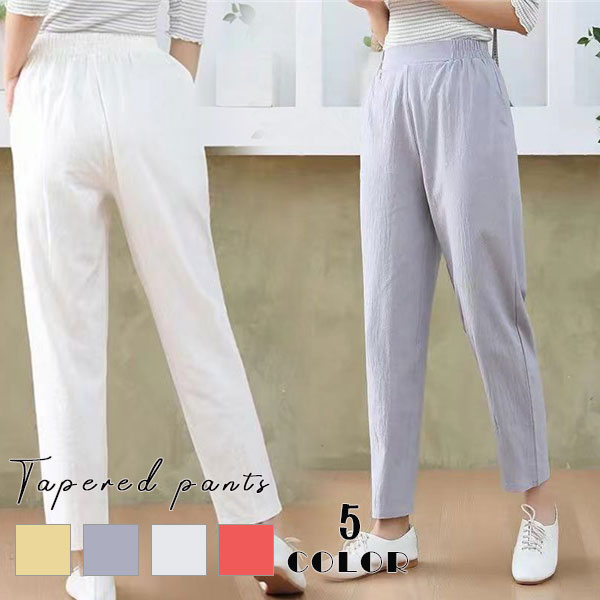 ポイント超超祭 セール中 テーパードパンツ リネン レディース 楽ちん 美脚 仕事 着痩せ 事務服 体型カバー カラフル オフィス 通勤 お出掛け シンプル 大きいサイズ