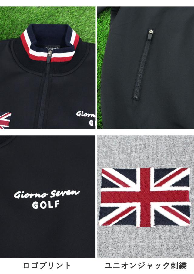 | 特徴 | ゴルフウェアブランド GIORNO SEVEN(ジョルノセブン) 胸元ユニオンジャック刺繍、 袖ラインのブランドロゴプリントの メンズゴルフジャケットと 裾ファスナーのロゴサイドラインゴルフパンツの 上下セットアップ。 パンツウエストゴム仕様で伸縮し穿きやすく ベルトループも施され内側ひも調整でもベルト装着でも可。 サイドポケットは安心の両ファスナー仕様。 滑らかな上質ポリポンチ素材で ストレッチ性もありスポーティ。 年間通してロングシーズン着用可。 | |||||