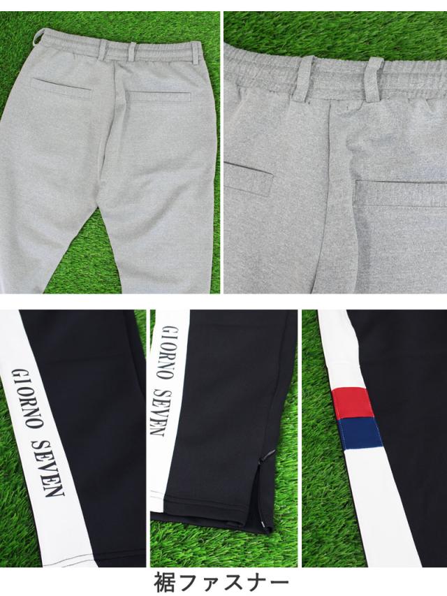 裾ファスナーのロゴサイドラインゴルフパンツの