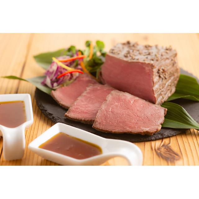 東京四谷にある和食の名店鈴なりの村田明彦シェフが監修したローストビーフです。数種類のスパイスをブレンドし、下味を丁寧に手作業でつけて真空加熱でじっくり焼き上げ、中はしっとりと仕上げました。シェフこだわりの柚子胡椒のソースは清涼感がありながらもピリッとアクセントが効いた和風ソースです。肉本来の旨みを堪能できる和風のローストビーフです。
