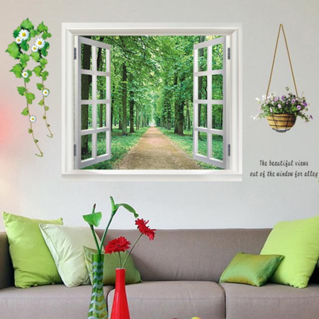 hesperus ウォールステッカー AB012 3D窓 森 散歩 花 自然 癒す DIY 壁紙 インテリアシート 剥がせるシール 送料無料