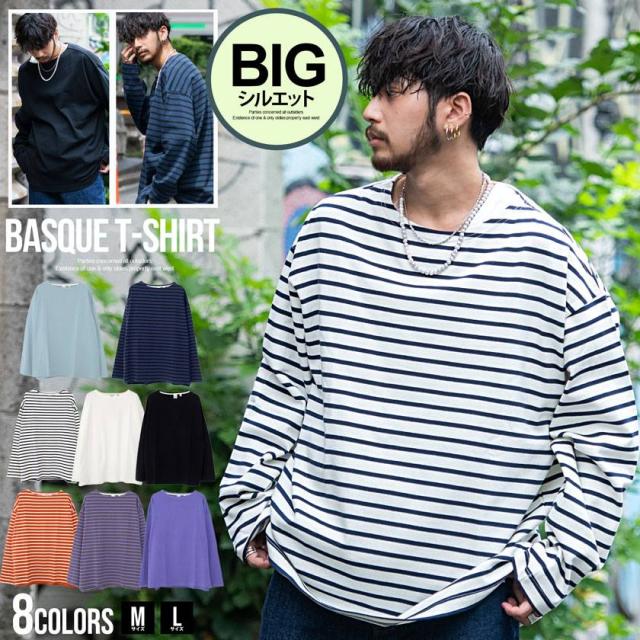 バスクシャツ 長袖Tシャツ メンズ ロンT 長袖 バスクTシャツ 無地 ボーダー ブランド シンプル ホワイト ブラック 黒 ネイビー 夏 春 秋 冬 インナー トップス カジュアル きれいめ ストリート M L 20代 30代 40代 メンズファッション 即日発送 [H21-009-11T]