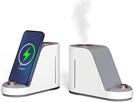 加湿器 小型 卓上加湿器 アロマ ハイブリッド式 ナノミスト加湿器 380ml大容量 3in1 ワイヤレス充電加湿器 10w高速充電 電話スタンド