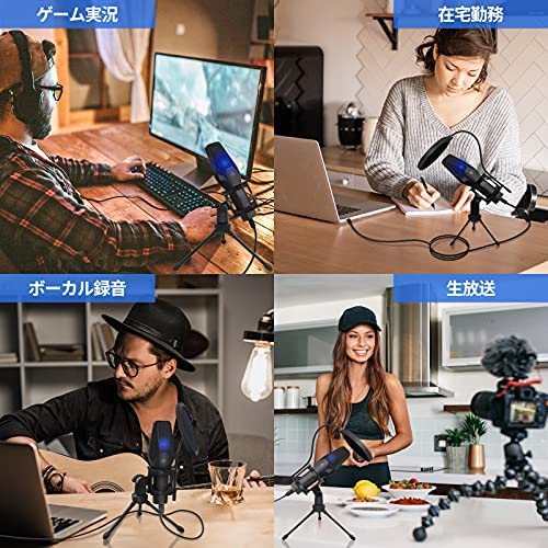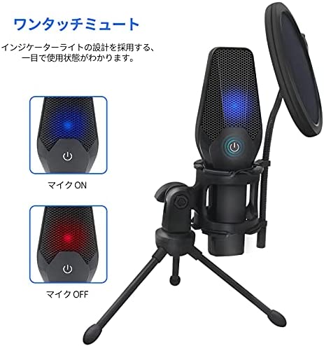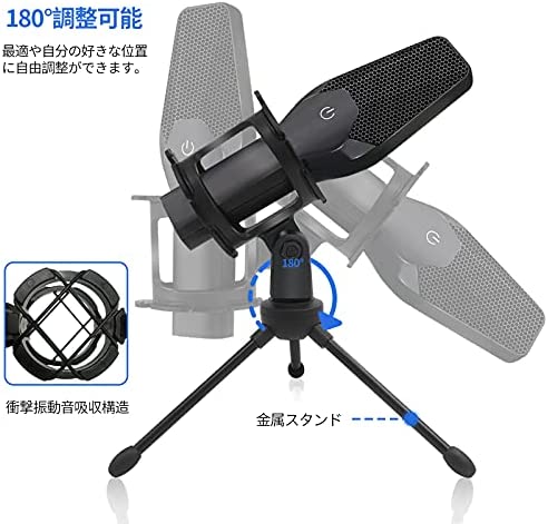 USB マイク コンデンサー マイク PC用 マイク タッチセンサー式 パソコン マイク 高感度 集音マイク 三脚マイクスタンド付き 単一指向性
