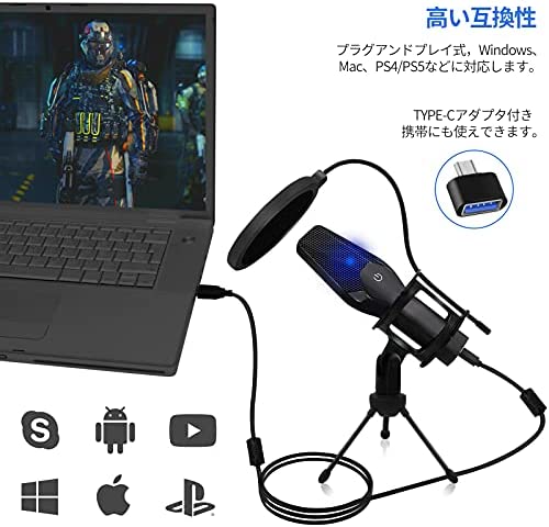 生放送 ボーカル録音 ゲーム実況 在宅勤務 YouTube オンラインチャット TYPE-Cの携帯 高音質 USBコンデンサーマイク 高感度・高集音力! USBコンデンサーマイクはサイバーパンクのユニークなデザインを採用し、高気密度ポップフィルター付属します。