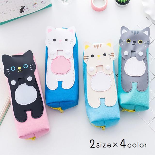 ペンケース 文房具 筆箱 ペン入れ ポーチ キャンバス ファスナー 四角 三角 かわいい 猫 学生 学校