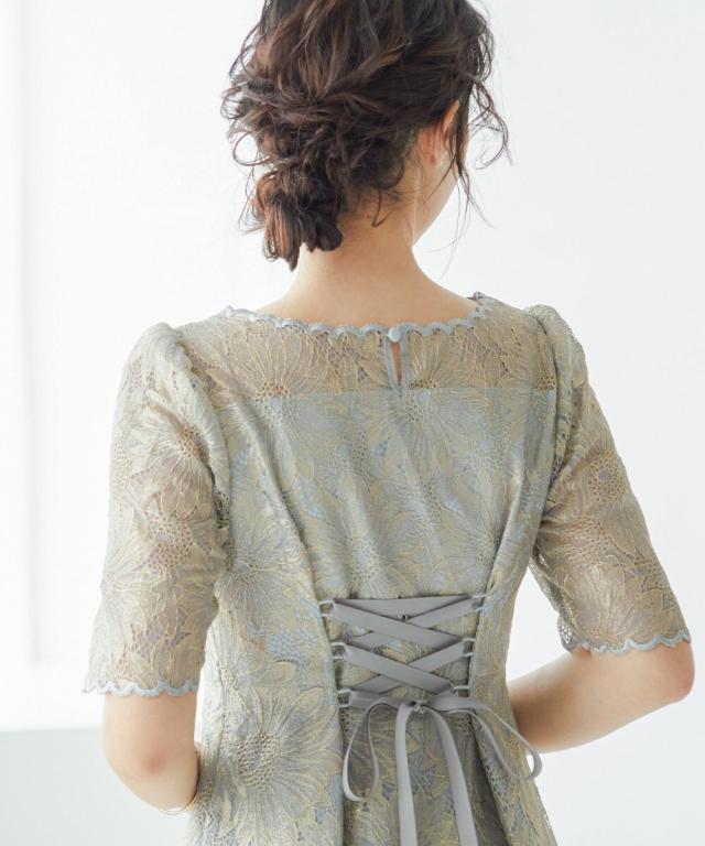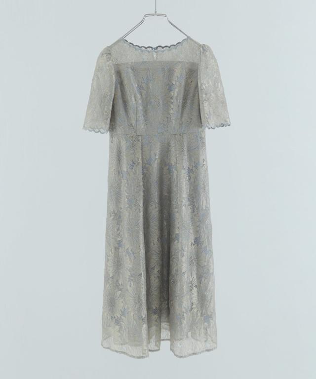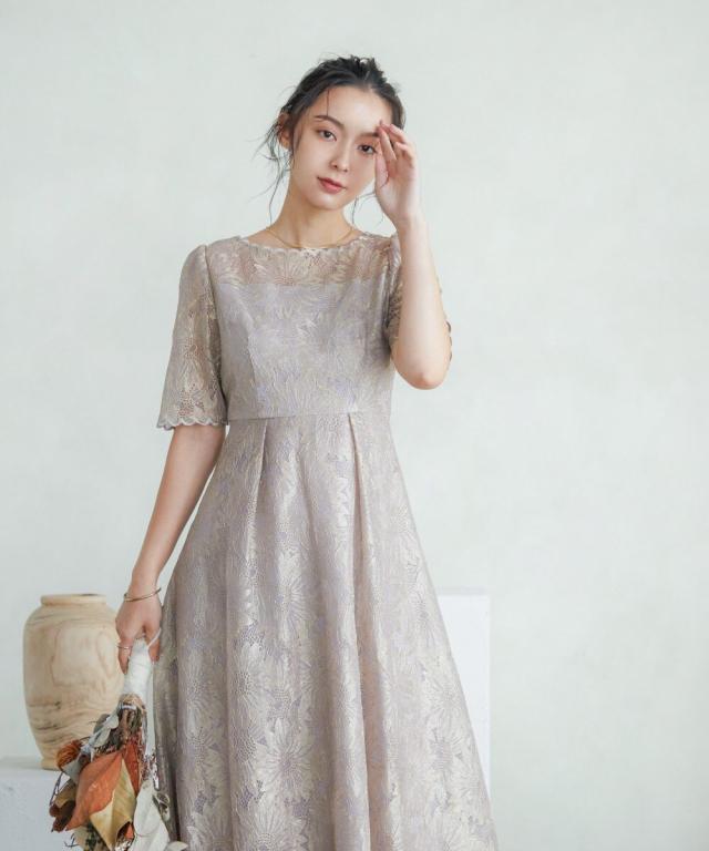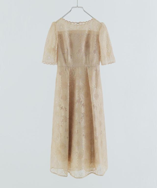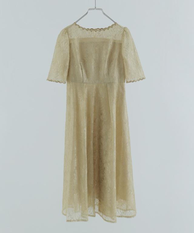 niana ニアナ ゴールド刺繍レースが目を惹く華やかなフレアワンピース。