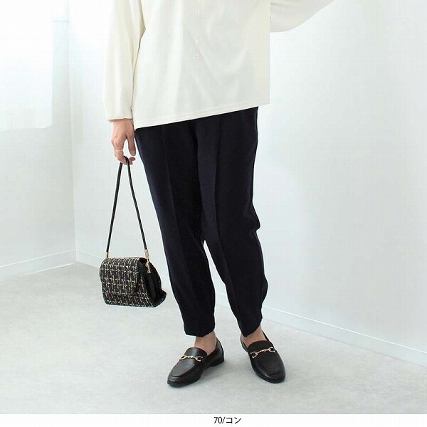 後ろ総ゴムの作りで着脱もしやすい程よいテーパードシルエットです。