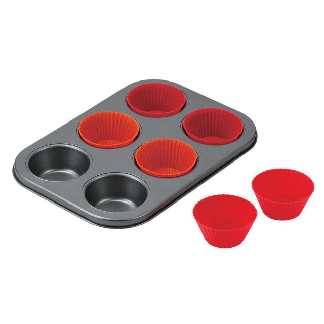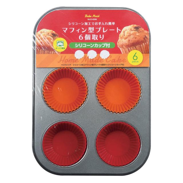 マフィン型 6個取り シリコン加工 ステンレス ベイクメイド シリコンカップ付き ( オーブン対応 マフィンカップ ケーキ型 お菓子づくり 手作り 型 マフィン 焼き菓子 ゼリー 蒸しパン ホームパーティー )