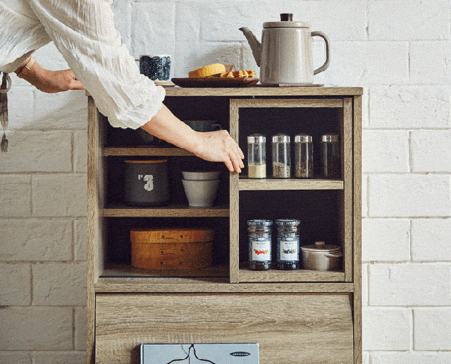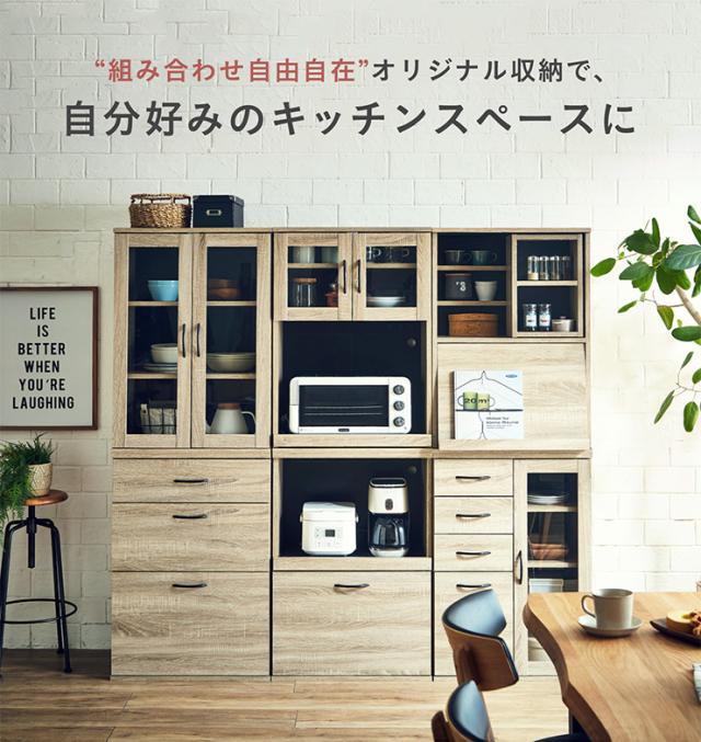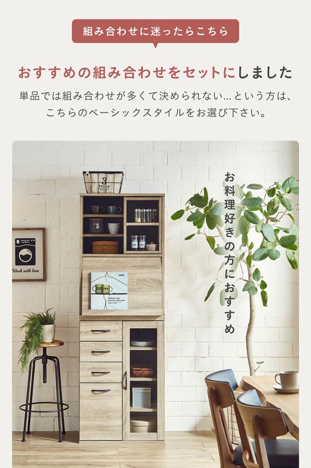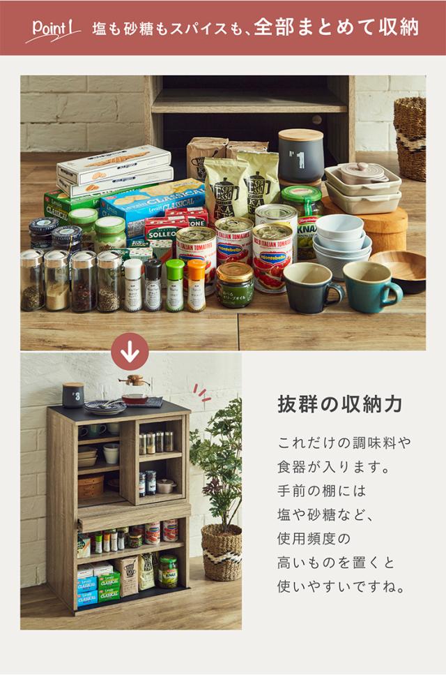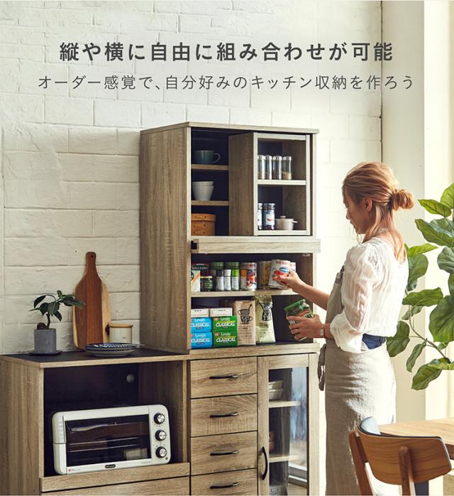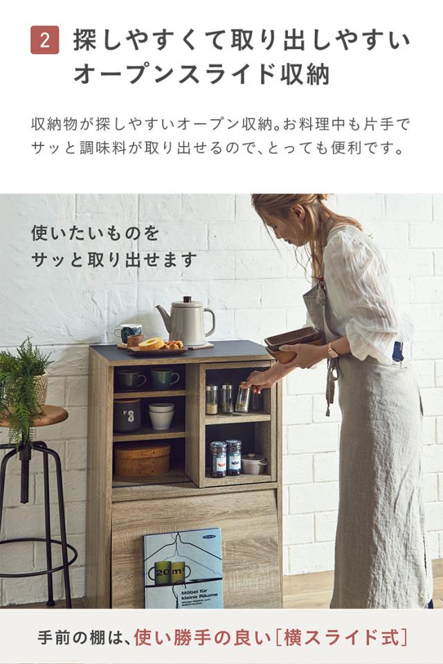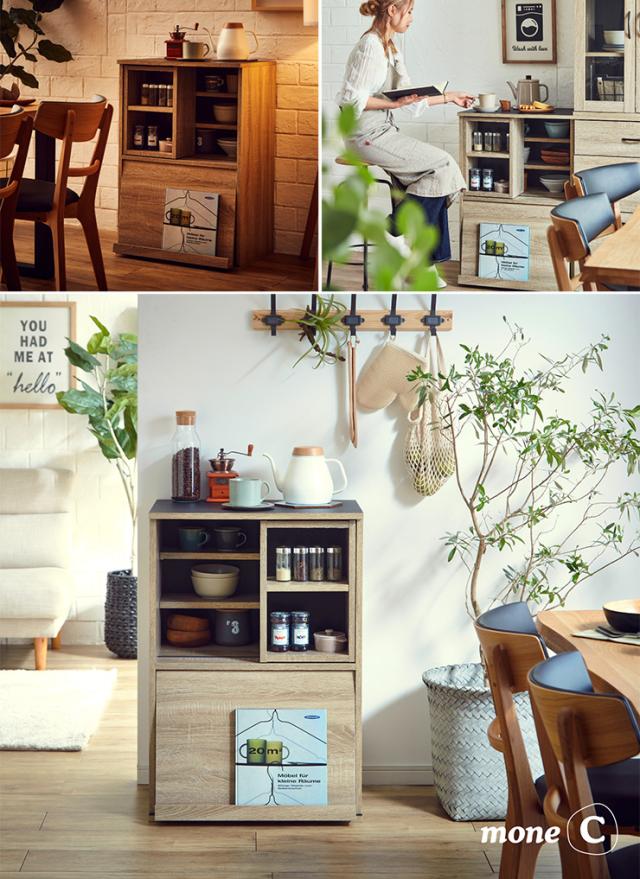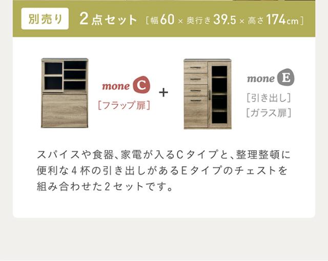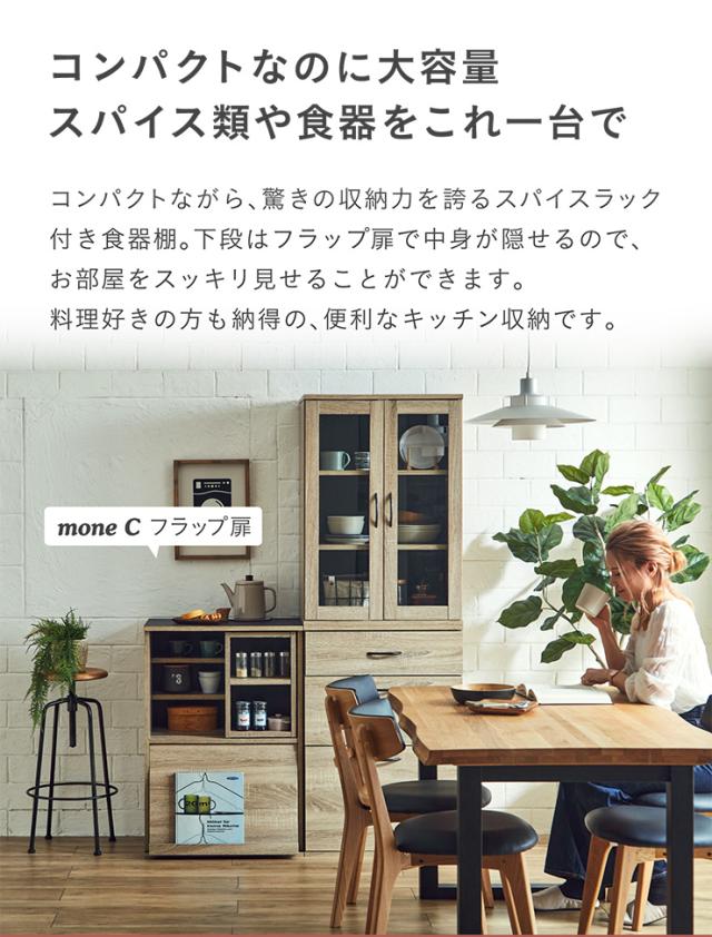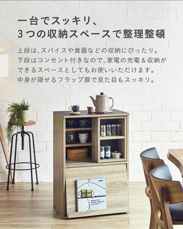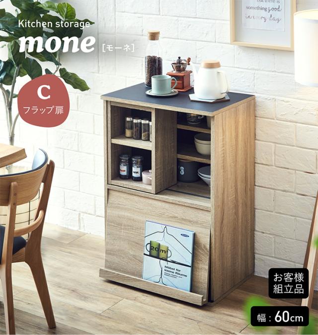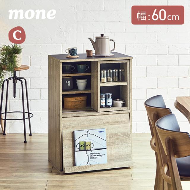 【シリーズで連結可能/コンセント付き】キッチン収納 幅60cm mone(モーネ) Cタイプ 食器棚 キッチンラック レンジ台 レンジボード スライド棚 台所 ロータイプ コンパクト おしゃれ シンプル 木製 60cm幅