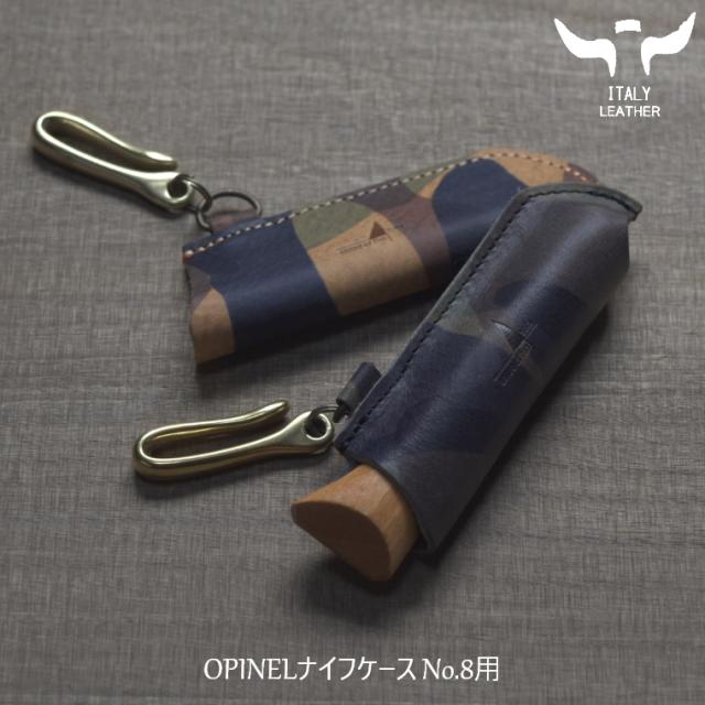 イタリアンレザー OPINEL ナイフケース No.8用 オピネル ナイフ ケース #8 フック付き アウトドア レザーカバー レザーケース 持ち運び 革 本革 男女兼用 レザー 牛革 cow オピネルナイフ プレゼント ギフト 日本製 italy 迷彩 カモフラ 真鍮製フック