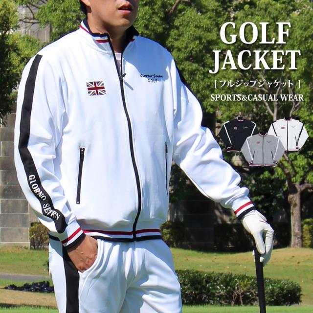 M~XXL 新作 送料無料 ゴルフジャケット メンズ ゴルフウェア 大きいサイズ GIORNO SEVEN ジョルノセブン ジャージトラックジャケット ブルゾン フルジップアップ ロゴ 刺繍 ライン トップス おしゃれ 秋冬 春夏