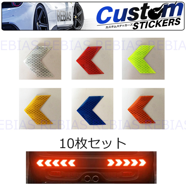 矢印 10枚セット 反射 ステッカー リフレクト 事故防止 カスタム 夜間